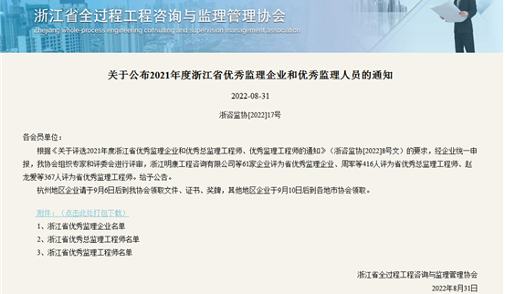【喜报】我司荣获2021年度浙江省优秀监理企业!
